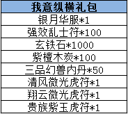 | 第一次开启 | 三才月饼*4,修行草*10,世传水晶*100,中级龙眼石100个, 国传钻石礼包5个,声望礼包2个,银卡500两 |